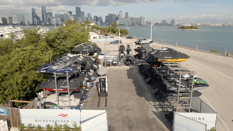 Enjoy zipping around the bay on your jet ski or wave runner with Rickenbacker Marina as your home base. Our jet ski storage area, with capacity for up to 130 PWC’s, is located on the upland portion of our property.